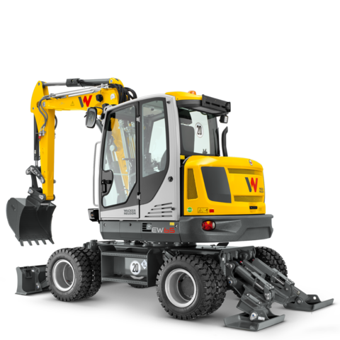 Like tracked excavators, wheeled machines are available in SAE or ISO controls.